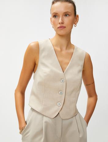 Crop Yelek Düğmeli
