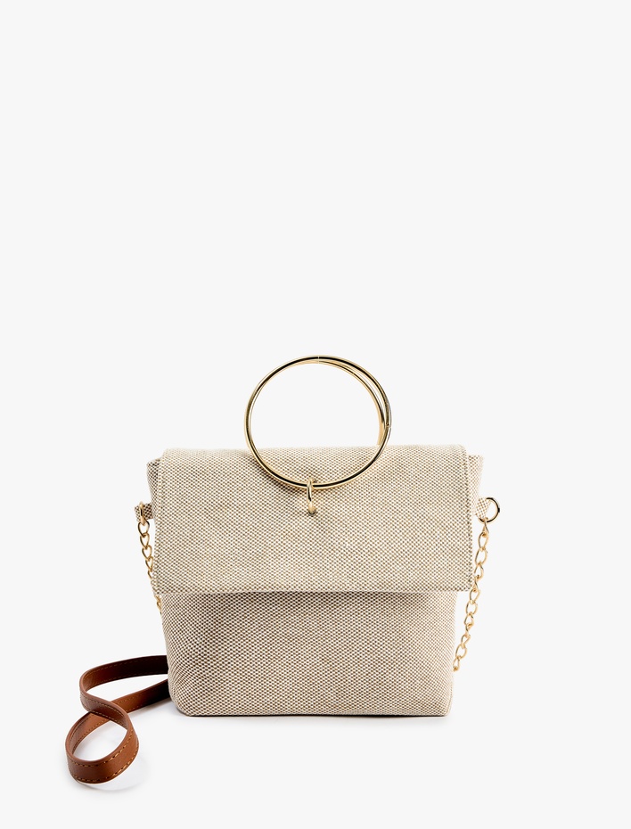 Kadın Metal Halka Detaylı Saplı Askılı El ve Omuz Çantası