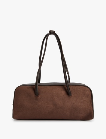 Fermuarlı Saplı Suni Süet Deri Görünümlü Büyük Omuz Çantası Sepete Ekle