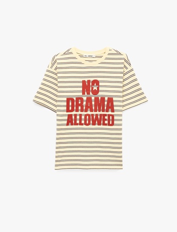 Rahat Kalıp Kısa Kollu Bisiklet Yaka Baskılı Tişört Sepete Ekle
