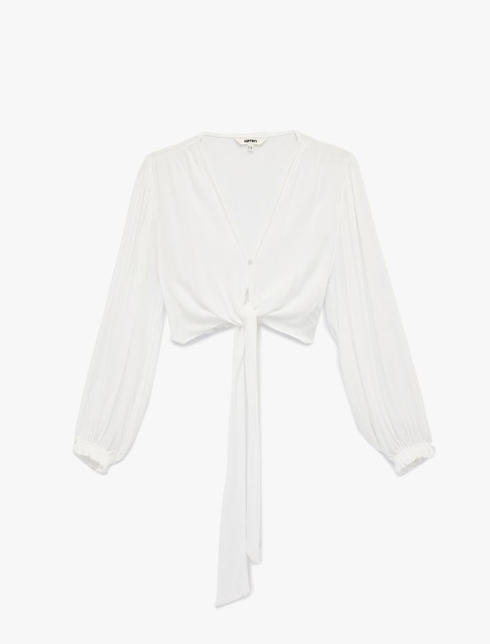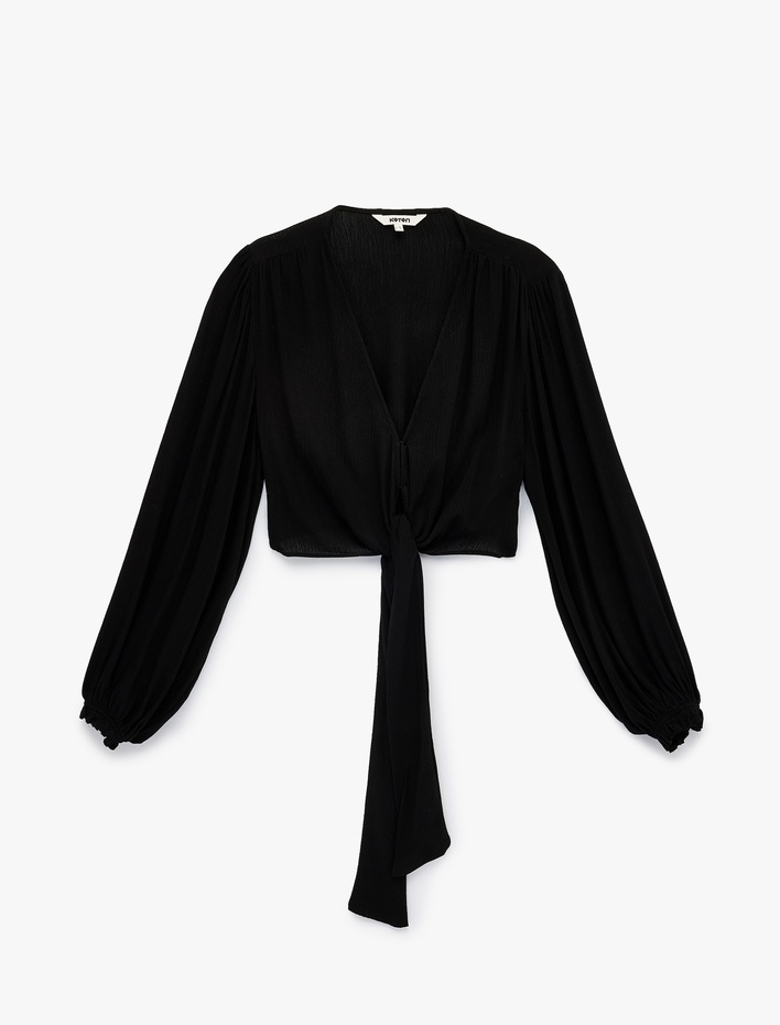 Balon Kol Bağlamalı Yaka Uzun Kollu Fisto Crop Bluz