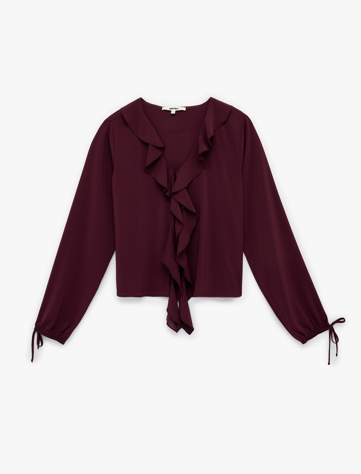 { "id": "8684848142256", "name": "Bol Kalıp Uzun Kollu Fırfırlı V Yaka Şifon Crop Bluz", "taxonomy":["CITY FASHION","CITY FASHION","WOMEN","WOVEN TOPS","BLOUSE LS"], "currency": "TRY", "unit_price": 999.99 , "unit_sale_price": 999.99 , "url": "https://www.koton.com/bol-kalip-uzun-kollu-firfirli-v-yaka-sifon-crop-bluz-bordo-4141017/", "stock": 59, "color": "BORDO", "size": "36", "product_image_url": "https://ktnimg2.mncdn.com/products/2025/12/31/3172571/abc58cf0-e98b-4f11-8919-a0fd5ca7cfe5_size870x1142.jpg" }