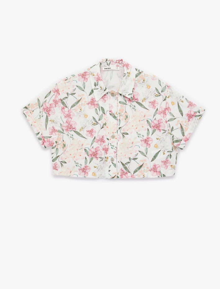 Regular Fit Kısa Kollu Çiçekli Crop Gömlek Sepete Ekle