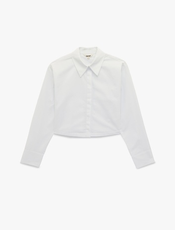 Regular Fit Pamuklu Klasik Yaka Uzun Kollu Crop Gömlek