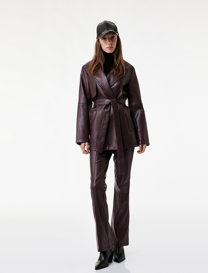 Koton X Sibil Çetinkaya - Cepli Düz Paça Suni Deri Pantolon Sepete Ekle
