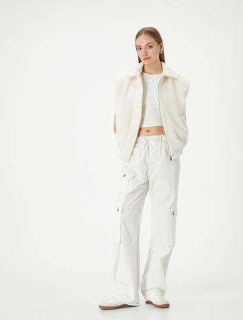 Çıt Çıt Kapama Detaylı Rahat Kesim Fermuarlı Peluş Yelek