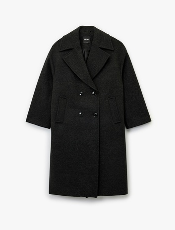 Uzun Kollu Cepli Düğmeli Kruvaze Uzun Kaşe Kaban Sepete Ekle