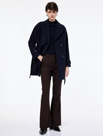 Uzun Kollu Cepli Kemer Detaylı Kruvaze Düğmeli Kısa Kaşe Mont Sepete Ekle