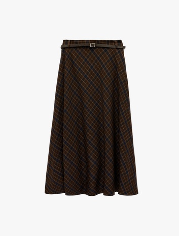 Kloş Kesim Kemerli Cepli Midi Boy Ekose Etek Sepete Ekle