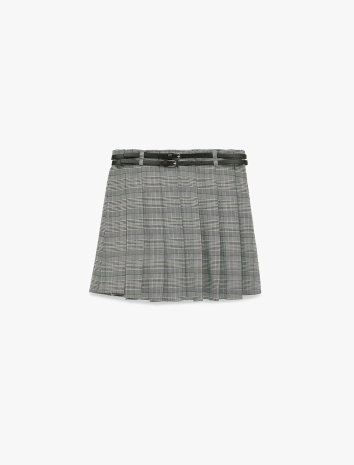 Kemerli Pile Detaylı Mini Ekose Şort Etek Sepete Ekle