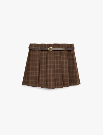 Koton X Sibil Çetinkaya - Kemer Detaylı A Kesim Ekoseli Pileli Mini Etek Sepete Ekle