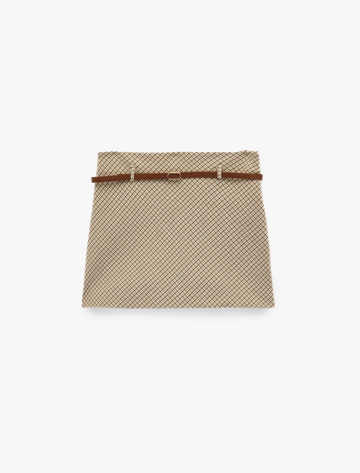 Kemerli A Kesim Ekoseli Mini Etek Sepete Ekle