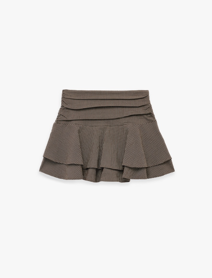 Beli Büzgülü Ekoseli Volanlı Poplin Mini Etek Sepete Ekle
