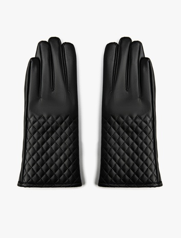 Kadın Suni Deri Eldiven Kapitone Detaylı İçi Peluş Astarlı