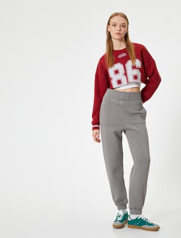 Jogger Eşofman Altı Beli Bağcıklı Ekstra Yüksek Bel Slim Fit İnterlok