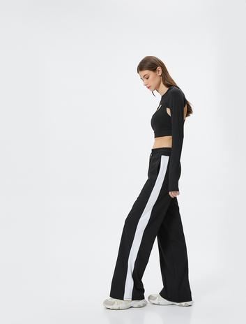 Geniş İspanyol Paça Spor Eşofman Altı Yandan Şerit Detaylı Beli Bağlamalı Cepli