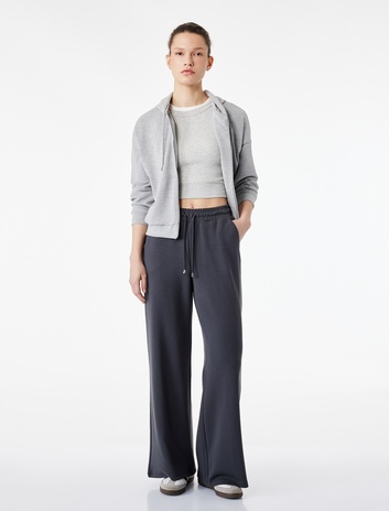 Modal Kumaş Karışımlı Beli Lastikli Bağcıklı Bol Paça Eşofman Altı Sepete Ekle