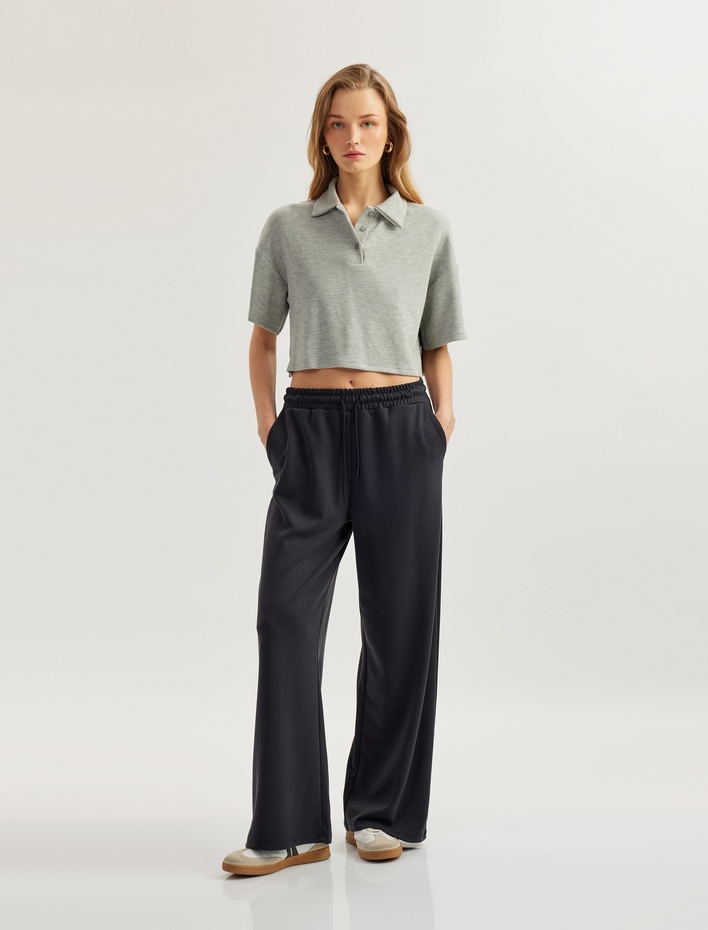 Beli Bağlamalı Cepli Modal Geniş Paça Eşofman Altı
