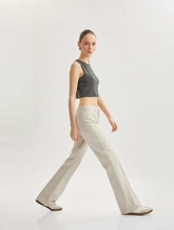 Asimetrik Bel Detaylı Nervürlü Geniş Paça Eşofman Altı