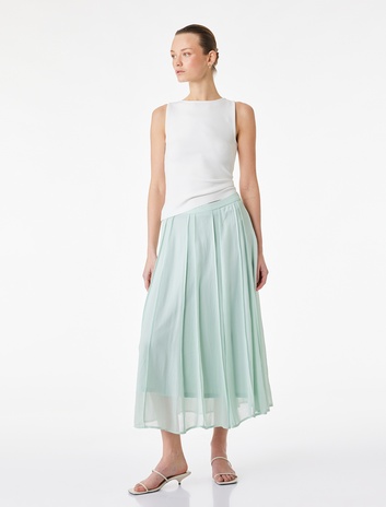 Standart Bel Pileli Midi Şifon Etek Sepete Ekle