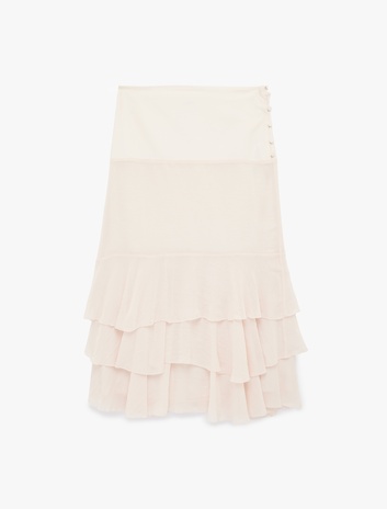 Düğme Detaylı Katmanlı Fırfırlı Şifon Midi Etek Sepete Ekle