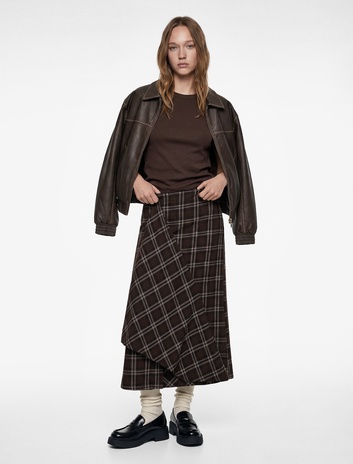 Yüksek Bel Asimetrik Kesim Kloş Midi Ekose Etek Sepete Ekle