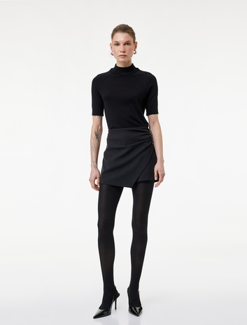Drape Detaylı Kruvaze Mini Taşlı Şort Etek