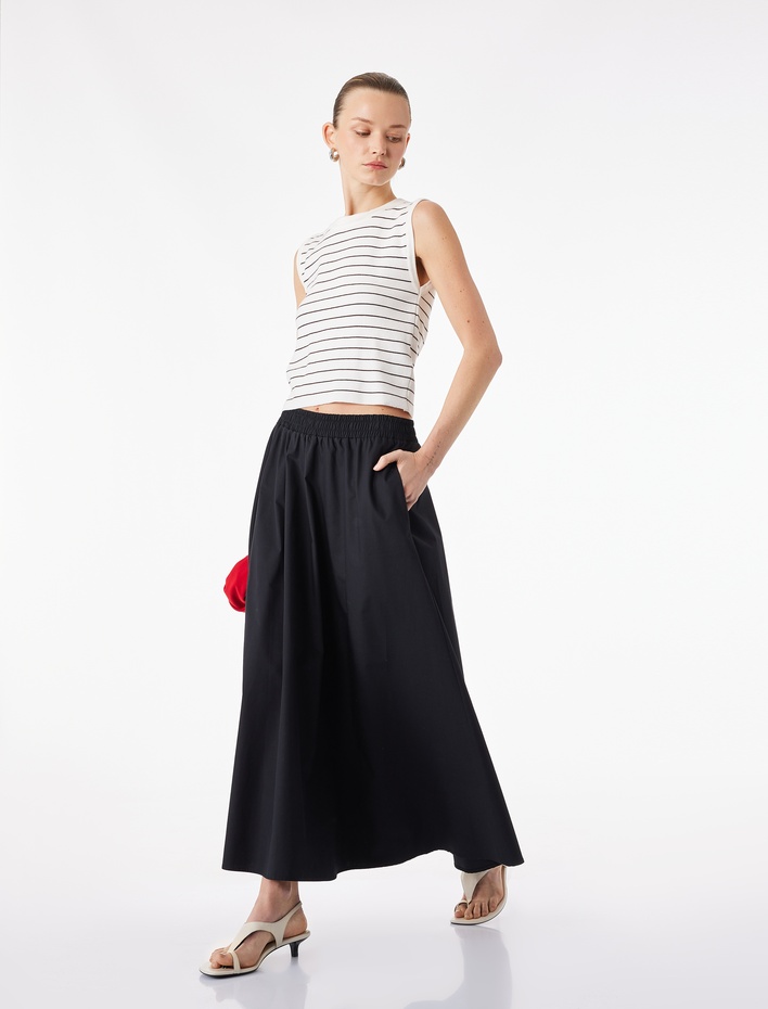 Pamuklu Beli Lastikli Çan Kesim Poplin Midi Etek Sepete Ekle