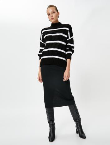 Slim Fit Midi Nervür Detaylı Kalem Etek