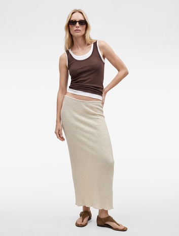Slim Fit Midi Nervür Detaylı Kalem Etek Sepete Ekle