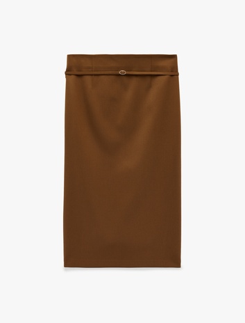 Slim Fit Yırtmaçlı Kemer Detaylı Midi Kalem Etek Sepete Ekle