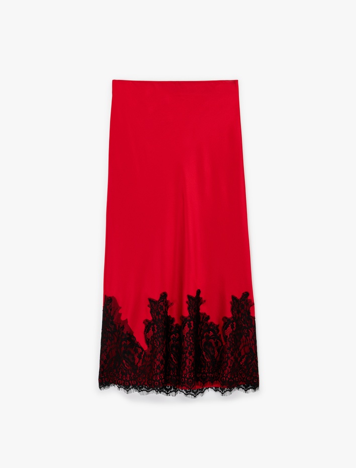 Dantel Detaylı Midi Saten Etek Sepete Ekle