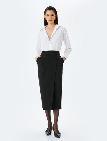 Kruvaze Midi Boy Cepli Etek