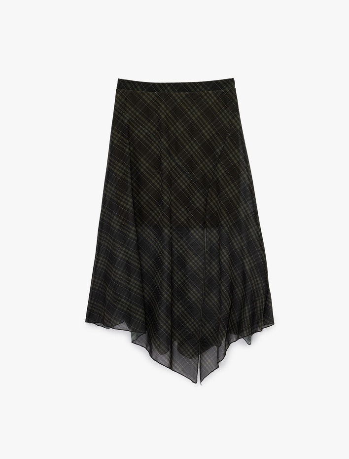 Asimetrik Kesim Ekoseli Tül Midi Etek Sepete Ekle