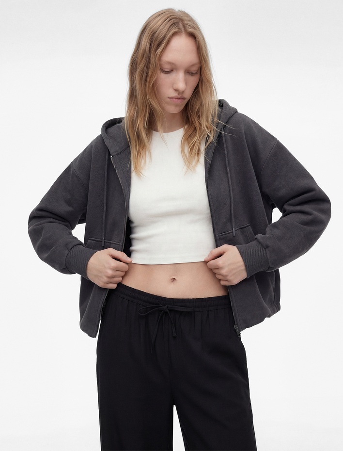 Modal Karışımlı Kapüşonlu Oversize Fermuarlı Sweatshirt Sepete Ekle