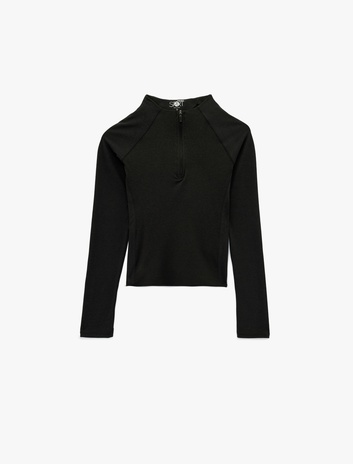 Uzun Kollu Dik Yaka Fermuarlı Sweatshirt
