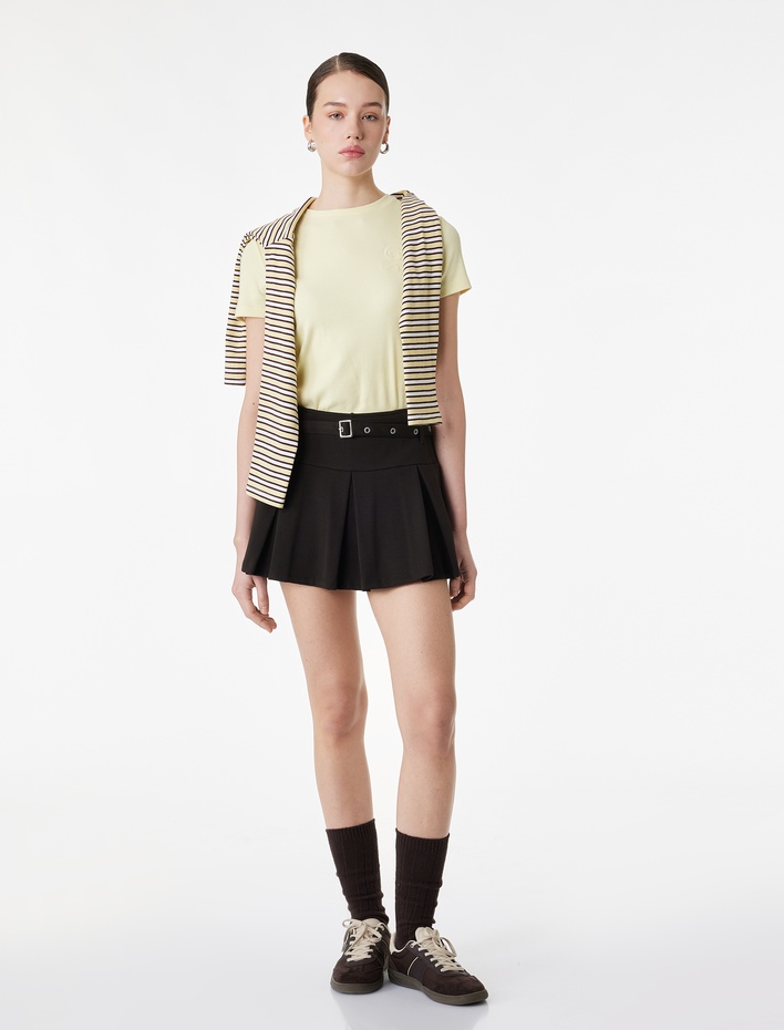 Standart Bel Kemerli Pileli Mini Şort Etek