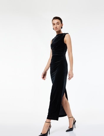 Bisiklet Yaka Kolsuz Yırtmaç Detaylı Uzun Elbise Sepete Ekle