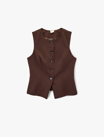 { "item_name": "Bisiklet Yaka Düğmeli Slim Fit Blazer Yelek", "item_id": "8684846904894", "price": 1399.99 , "item_brand": "Koton", "item_category":"CITY FASHION", "item_category2":"CITY FASHION", "item_category3":"WOMEN", "item_category4":"BLAZERS", "item_category5":"VESTS", "item_season":"2025 AUTUMN/WINTER", "item_variant": "KAHVERENGİ|34", "item_list_name":"Giyim", "item_list_id":"437", "index": 4681 , "quantity":1, "base_code": "6WAK20028PW" }