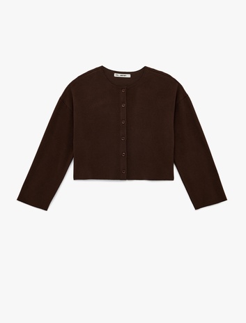 Uzun Kollu Bisiklet Yaka Düğmeli Triko Hırka Sepete Ekle