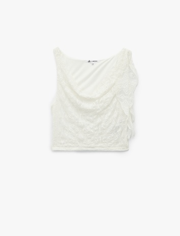Slim Fit Degaje Yaka Dantelli Kolsuz Bluz Sepete Ekle