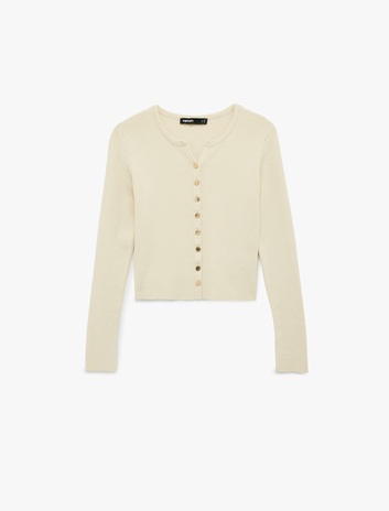 Düğmeli Uzun Kollu Bisiklet Yaka Triko Hırka