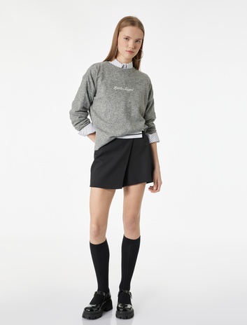 Uzun Kollu Bisiklet Yaka İşlemeli Triko Kazak