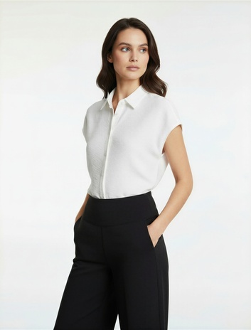 Aerobin Kumaş Regular Fit Kısa Kollu Crop Gömlek