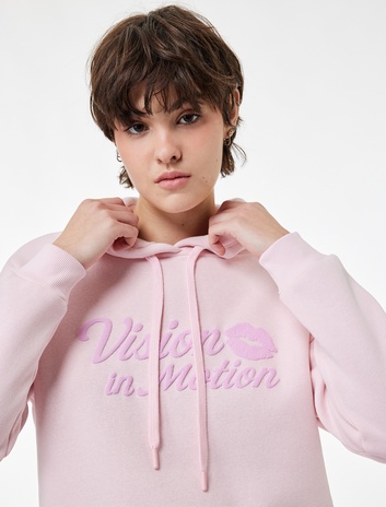 Şardonlu Uzun Kollu Kapüşonlu Baskılı Oversize Sweatshirt Sepete Ekle