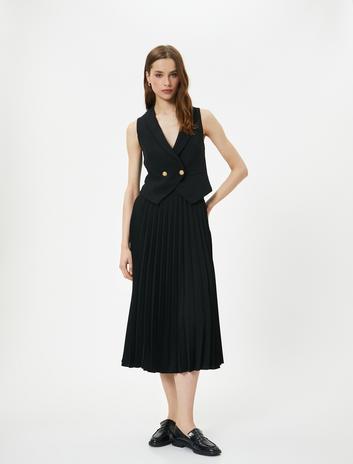 Midi Pileli Etek Normal Bel Sepete Ekle