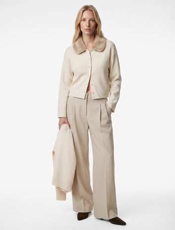 Uzun Kollu Düğmeli Çıkarılabilir Suni Kürk Yakalı Hırka Sepete Ekle