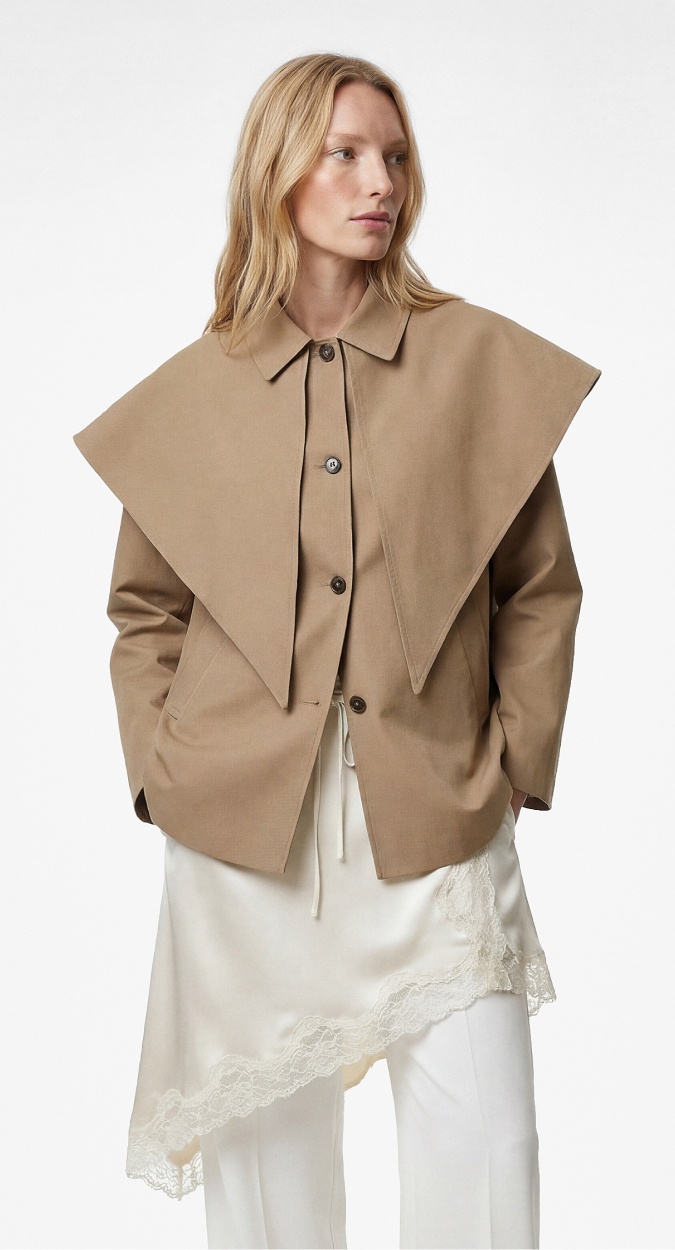 Çıkarılabilir Pelerin Yaka Kaşe Kaban Kemerli Uzun Kollu Düğmeli Cepli Sepete Ekle