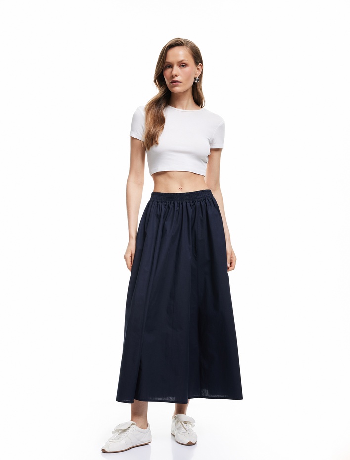 Uzun Kloş Etek Cepli Poplin Standart Bel