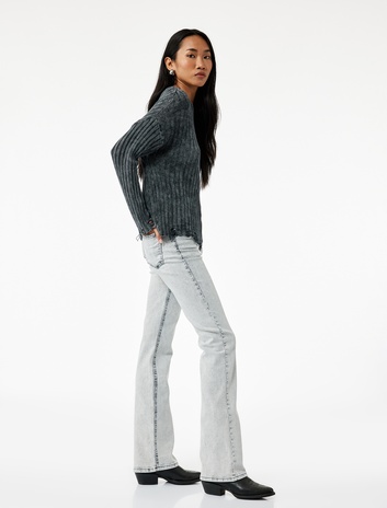 Yüksek Bel Dar Kesim İspanyol Paça Denim Pantolon - Flare Jeans